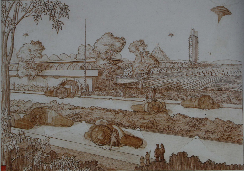 Al observar la salida de muchos negocios de los núcleos urbanos antiguos, congestionando el tráfico de los suburbios, Wright planteó ir más allá y descentralizar por completo el trabajo que podría realizarse en el propio domicilio gracias a los avances en telecomunicaciones. Esa gran confianza en la tecnología se ilustra en sus posteriores dibujos en los que incluso visiona los “aerotores”, una especie de helicóptero que no necesita de pistas de aterrizaje y que reemplazaría a los aviones y los trenes de pasajeros; o diversos modelos de vehículos de dos ruedas, eficientes y respetuosos con el medio. También apostaría por la aparición de hoteles móviles y ciudades barco, promoviendo así una mayor libertad de movimiento. El concepto de Ciudad Viviente se nutre claramente de su condición de cambio y evolución continua.
