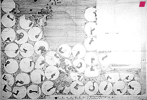 A pesar de que la maqueta de Broadacre defina una retícula ortogonal de carreteras, el modelo de crecimiento planteado por Wright debía mostrar una flexibilidad ilimitada frente a los diferentes territorios y condiciones climáticas, como se puede ver en el caso del proyecto de Parkwyn Village (Michigan, 1947).