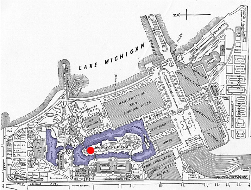 Feria de Chicago_planta 15/08/2013 850 × 645 Wright, conexión con Oriente. Feria mundial de Chicago, 1893. Planta general y ubicación del Pabellón del Japón.