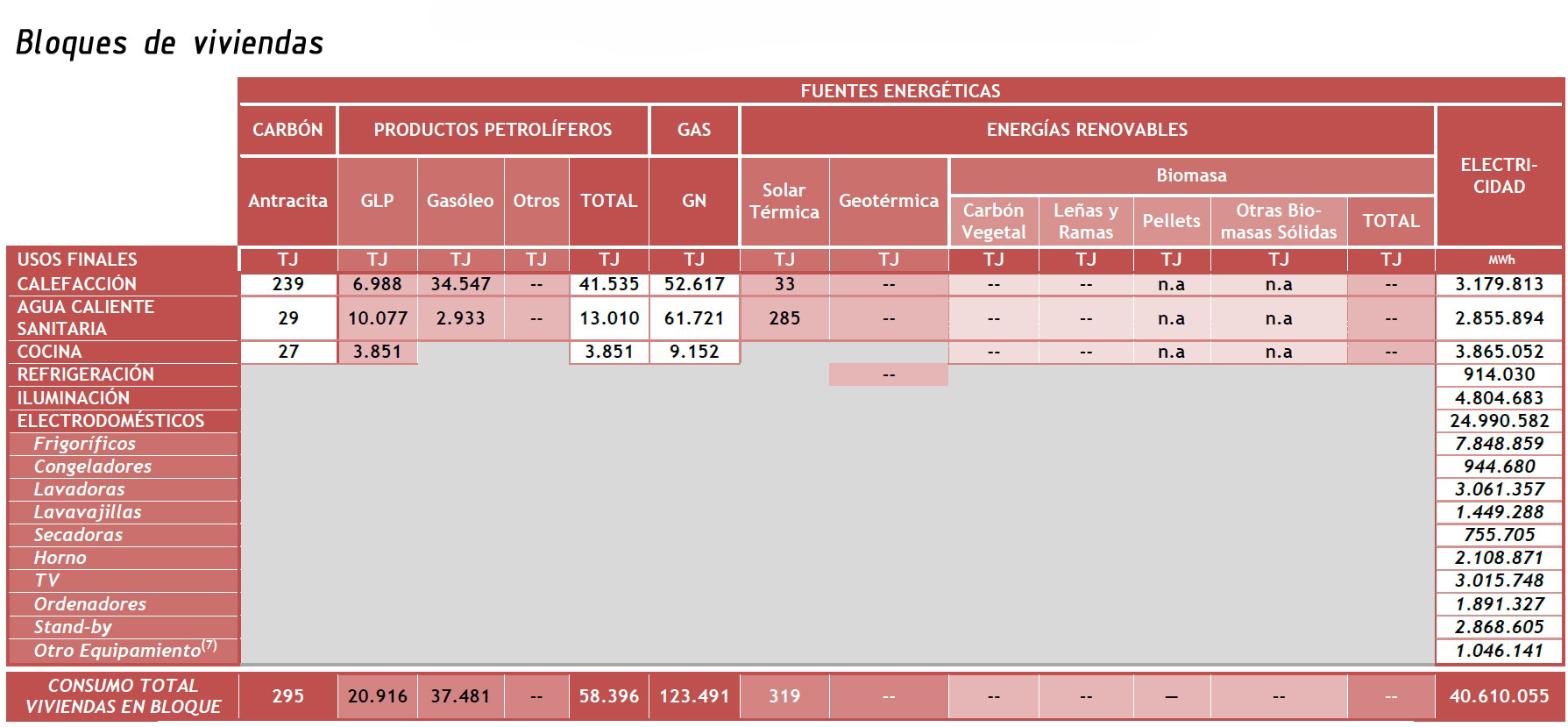 - En los pisos, este consumo es un 25% inferior a la media nacional, situándose en 27,3 TJ al año (0,652 tep/hogar).