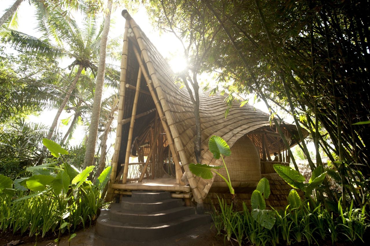 Un precioso poblado de villas de bambú en plena selva balinesa, muy cerquita del Green School.