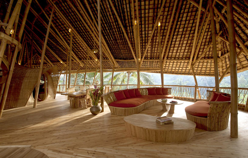 La pareja de diseñadores y ecologistas John y Cynthia Hardy junto a su hija Elora llevan años desempeñando una labor de concienciación por una construcción sostenible. El bambú se ha convertido en la firma de su empresa de diseño IBUKU. Este material, con gran arraigo en la cultura balinesa y unas características técnicas, ecológicas y estéticas casi inmejorables, es sin duda el ideal para experimentar con visión de futuro en sus dos proyectos insignia en Bali: el Green School y el Green Village.