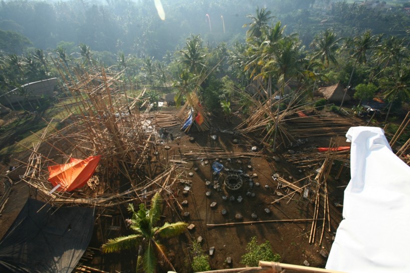 El Puente del Milenio es otro ejemplo de la alta resistencia del bambú, pero esta vez a tracción. Realizado con 192 postes en representación de todos los países del mundo (una justificación por mi parte bastante irrelevante), se realizó de forma artesanal gracias a donaciones locales, con una forma curva al estilo Minangkabau que recuerda, según la tradición, a los cuernos de un búfalo.