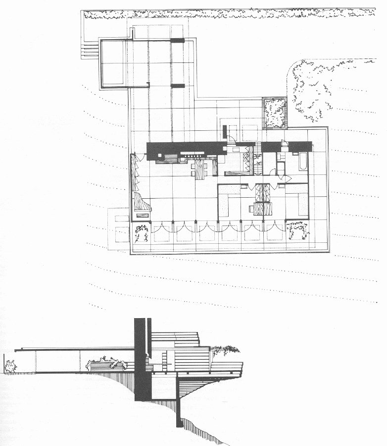 Esta pequeña vivienda de dos dormitorios es la única obra de Wright del estilo Usonia en el sur de California. Su construcción fue supervisada por el recién licenciado John Lautner, siendo una gran influencia para muchas de sus futuras obras por su forma de enfrentarse al entorno. Su único volumen de madera en voladizo sobre un núcleo de hormigón revestido de ladrillo le confiere una presencia sencilla y majestuosa; un mirador que domina el paisaje, con preciosas vistas al mar y claras referencias a la famosa Casa de la Cascada (1936-38).