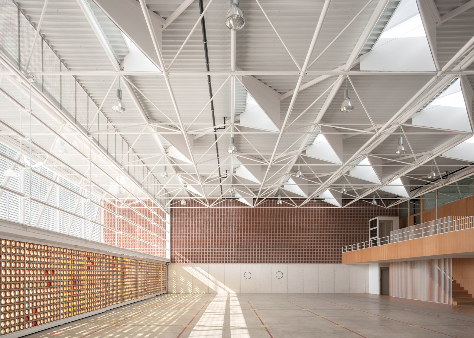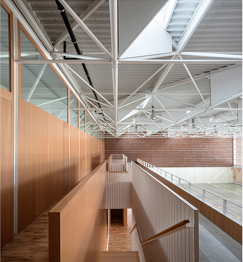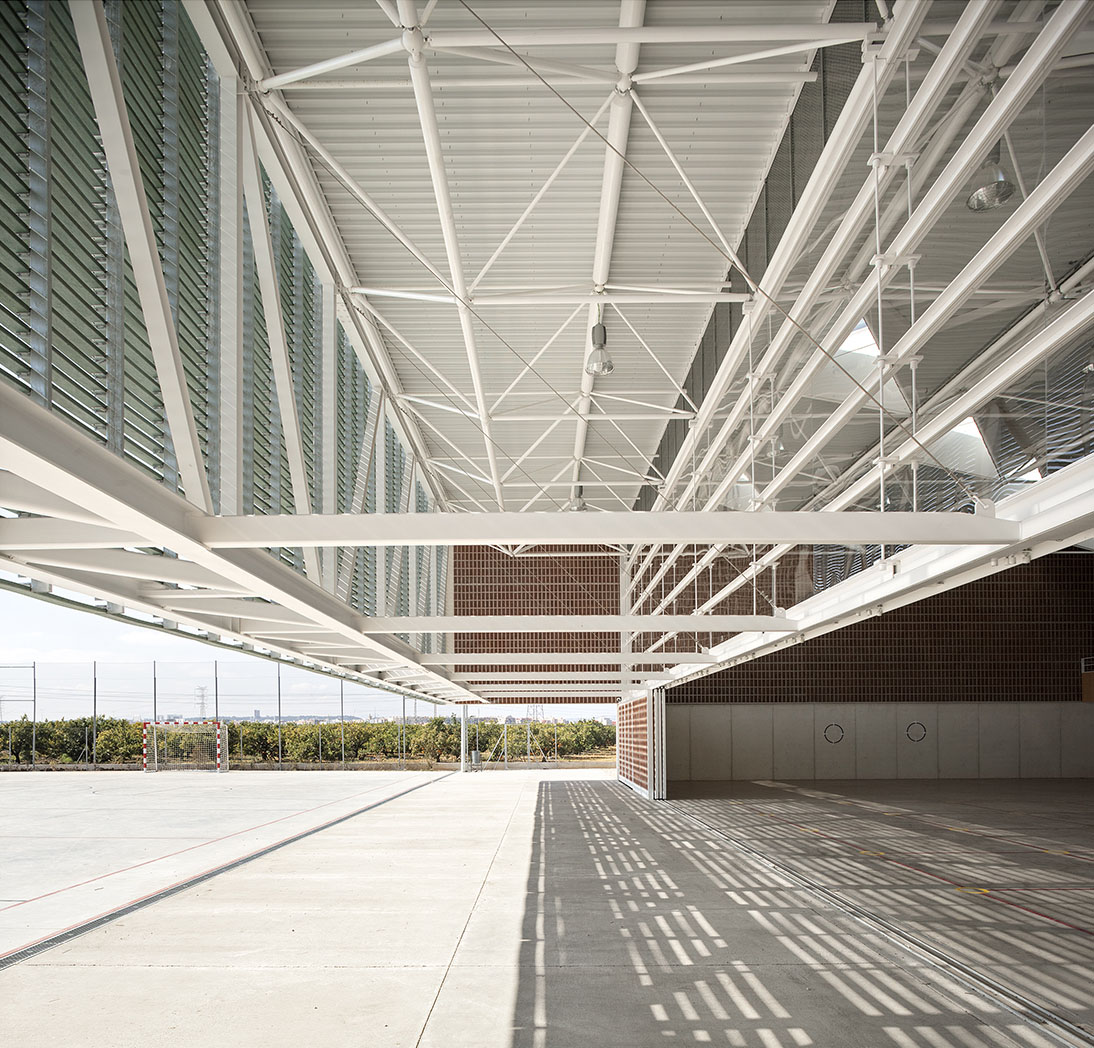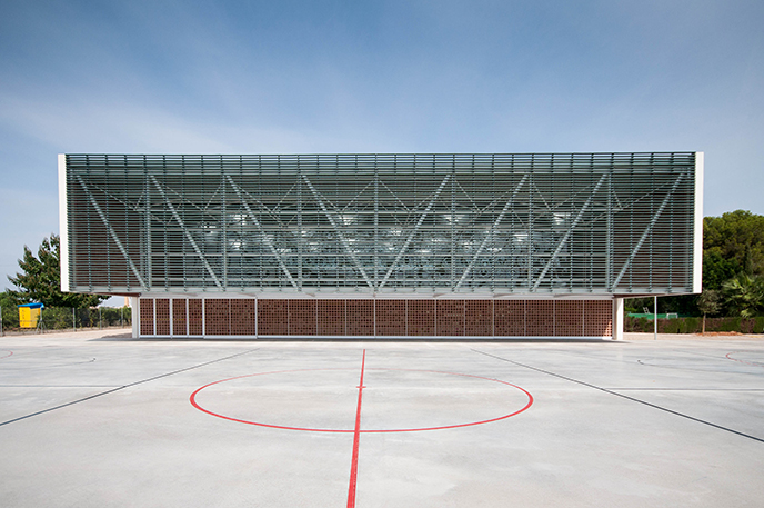 Este pabellón deportivo finalizado en 2014 recibió en 2015 el Premio ASCER por la solución de su fachada principal, que incorpora una gran celosía cerámica y corredera. Este edificio amplía las instalaciones ya existentes de la Escola Gavina, con un curioso diálogo con el edificio docente construido en 1980 por Manuel Portaceli, que recuerda la arquitectura de Terragni.