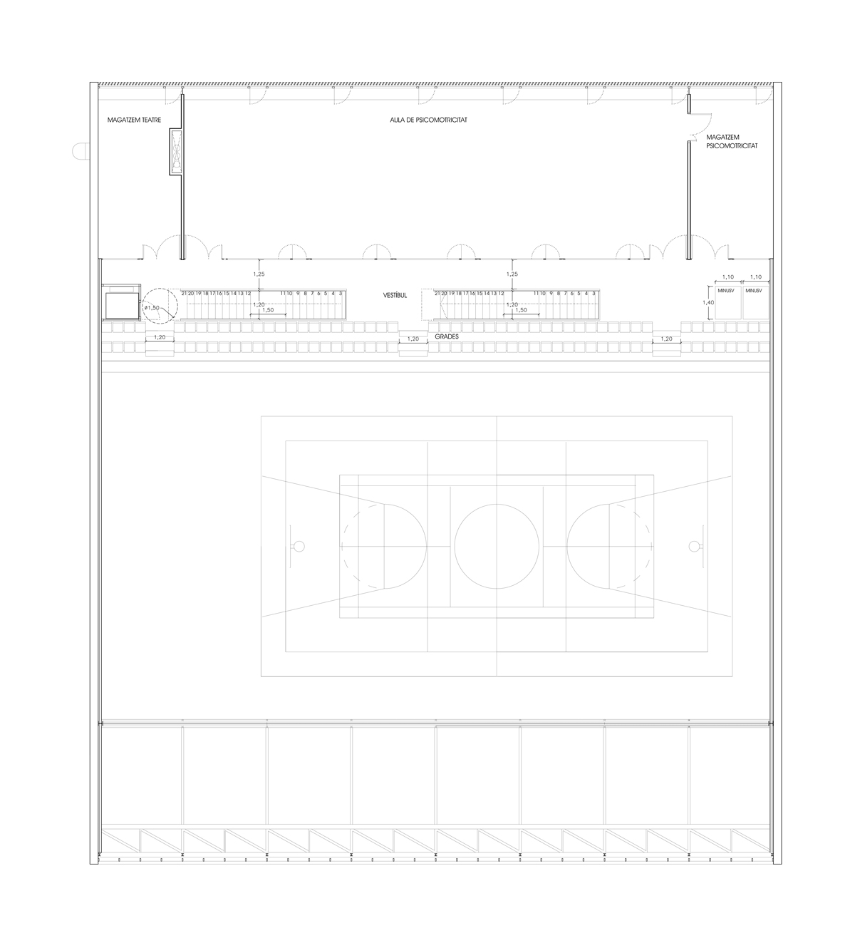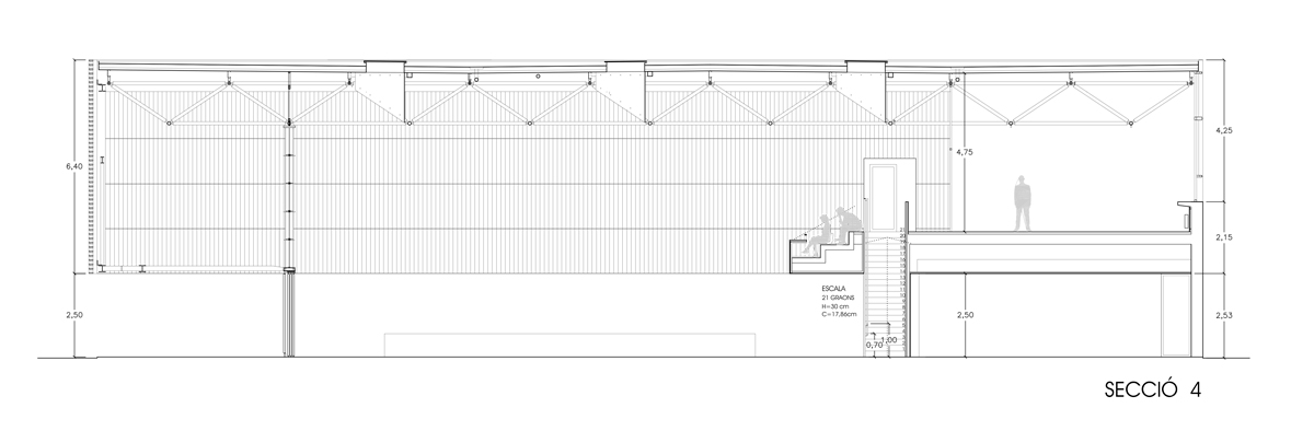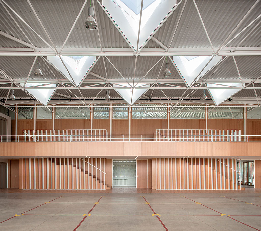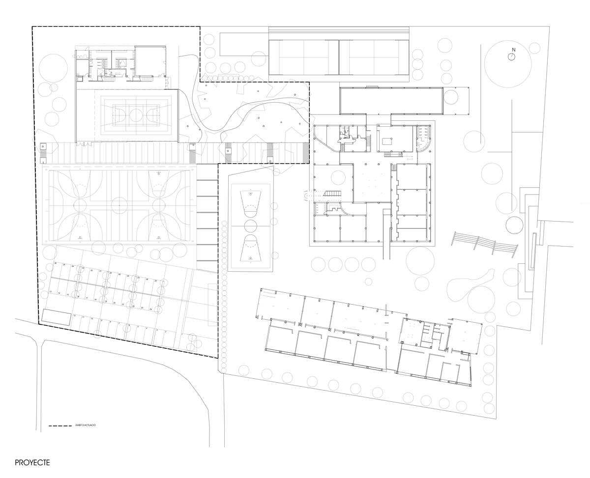 Programa: Pabellón multiusos en Escola Gavina para reuniones, fiestas, espectáculos musicales y teatrales, además de su uso como equipamiento deportivo.