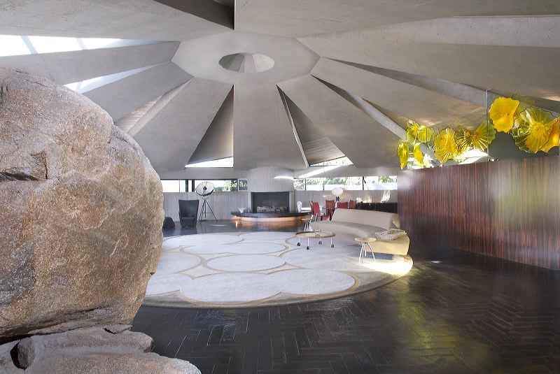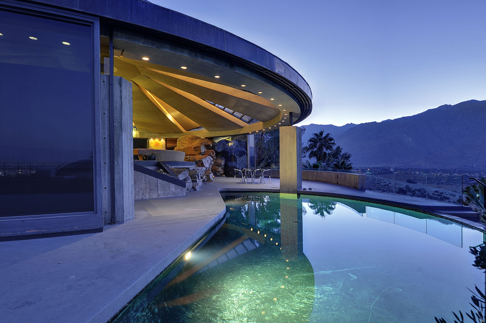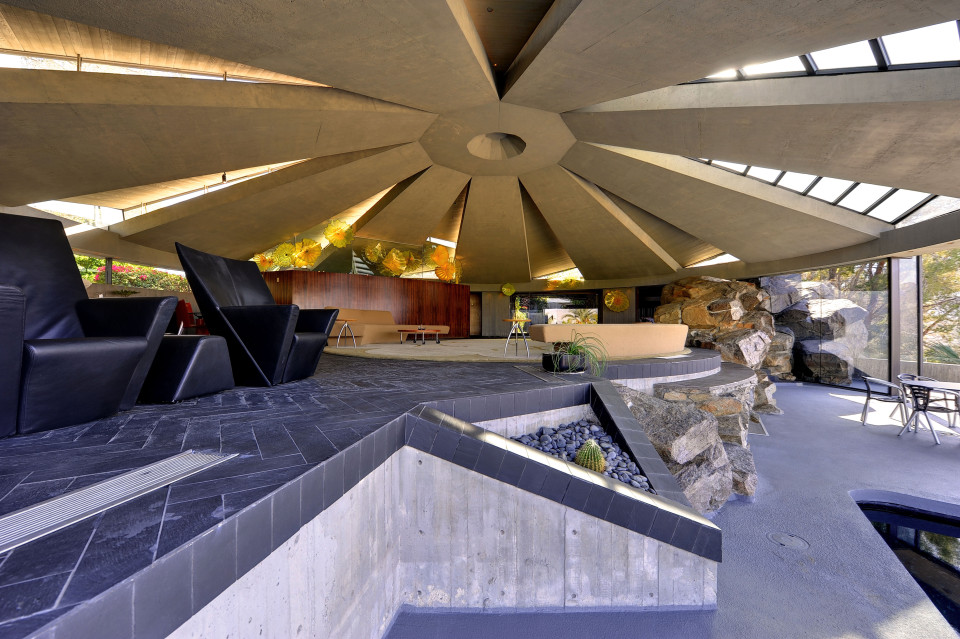 Una verdadera obra maestra del hormigón… Esta casa construida en 1968 para el diseñador de interiores Arthur Erold, se mostró al mundo en 1971 como la casa de James Bond (Sean Connery) en “Diamonds are forever”. Aunque lo más impresionante sea su cubierta autoportante de 18m de diámetro, que se abre al cielo cual flor del desierto, lo cierto es que esta espectacular casa está repleta de detalles y estrategias escenográficas que la convierten en una joya para los sentidos. Espero poder compartirlo pronto con vosotros con la temática del “espacio infinito de Lautner”, y la relación de su obra con el entorno, pero hasta entonces, como adelanto os dejo esta selección de fotos y vídeos para que vayáis abriendo boca. Disfrútenlo!