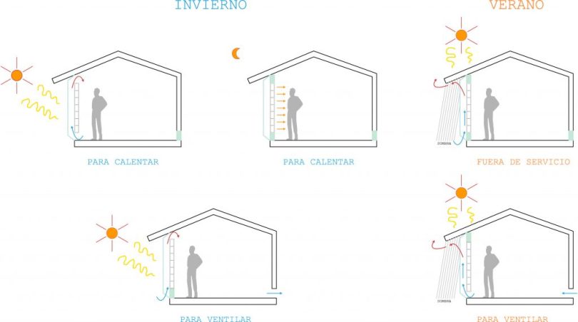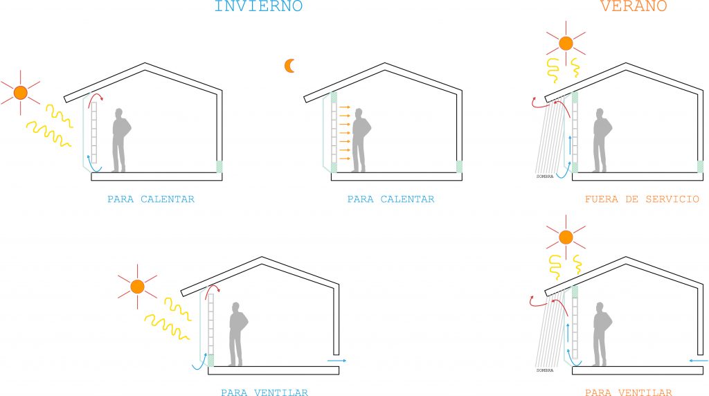 Muro trombe – esquemas funcionamiento 2 12/10/2018 1024 × 572 Muros trombe: qué son y cómo funcionan.