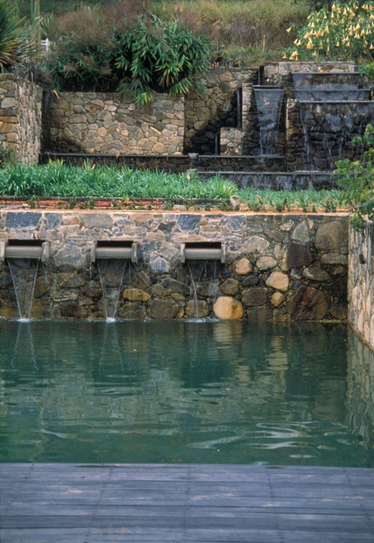 Las geometrías puras que aquí encontramos caracterizan la última etapa de su carrera, y Vargem Grande es sin duda una de las obras más representativas de ese periodo. Combinando ángulos rectos con semicírculos, ofrece un diseño ortogonal en curioso contraste con la libertad de la selva en la que se adentra. En un extremo del jardín, aloes y bromelias colonizan unos sinuosos montículos escalonados de piedra. Sus contornos curvilíneos son los únicos que escapan al ángulo recto, añadiendo al conjunto un cierto toque escultórico.