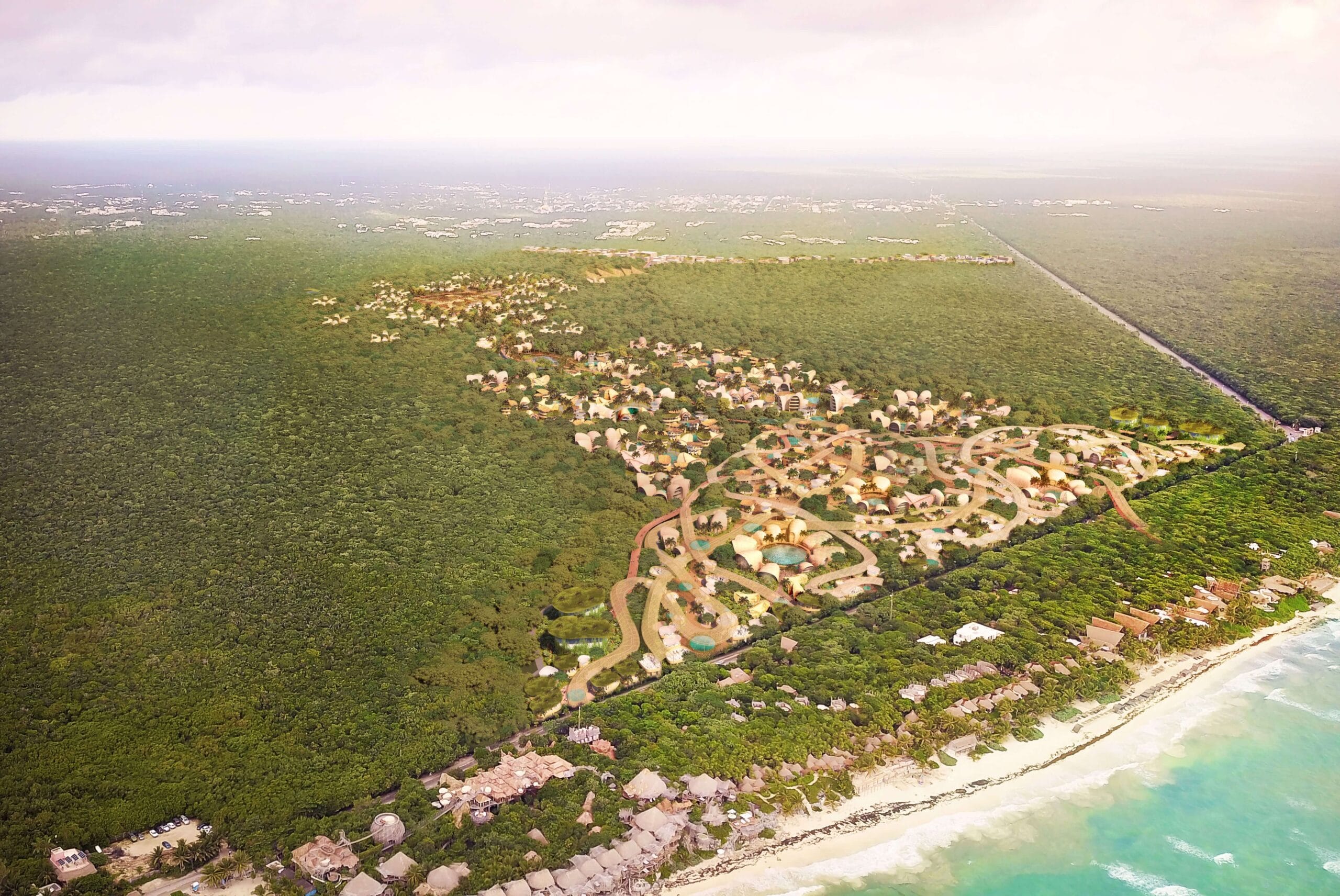 Pero la visión de desarrollo urbanístico va más allá, con la previsión de alcanzar la costa a 2,6km de distancia. Con el nombre de Selvazama, este ambicioso proyecto se ideará, citando palabras textuales, “bajo un concepto sustentable comprometido a inspirar el crecimiento personal mediante la conexión humana y apoyando el desarrollo económico responsable». Esta extensión de terreno se dividirá en tres zonas. La más cercana al mar será la Zona Beach, con una ruta de senderos conectando los distintos edificios residenciales, hoteles y comercios hasta las playas de Tulum.