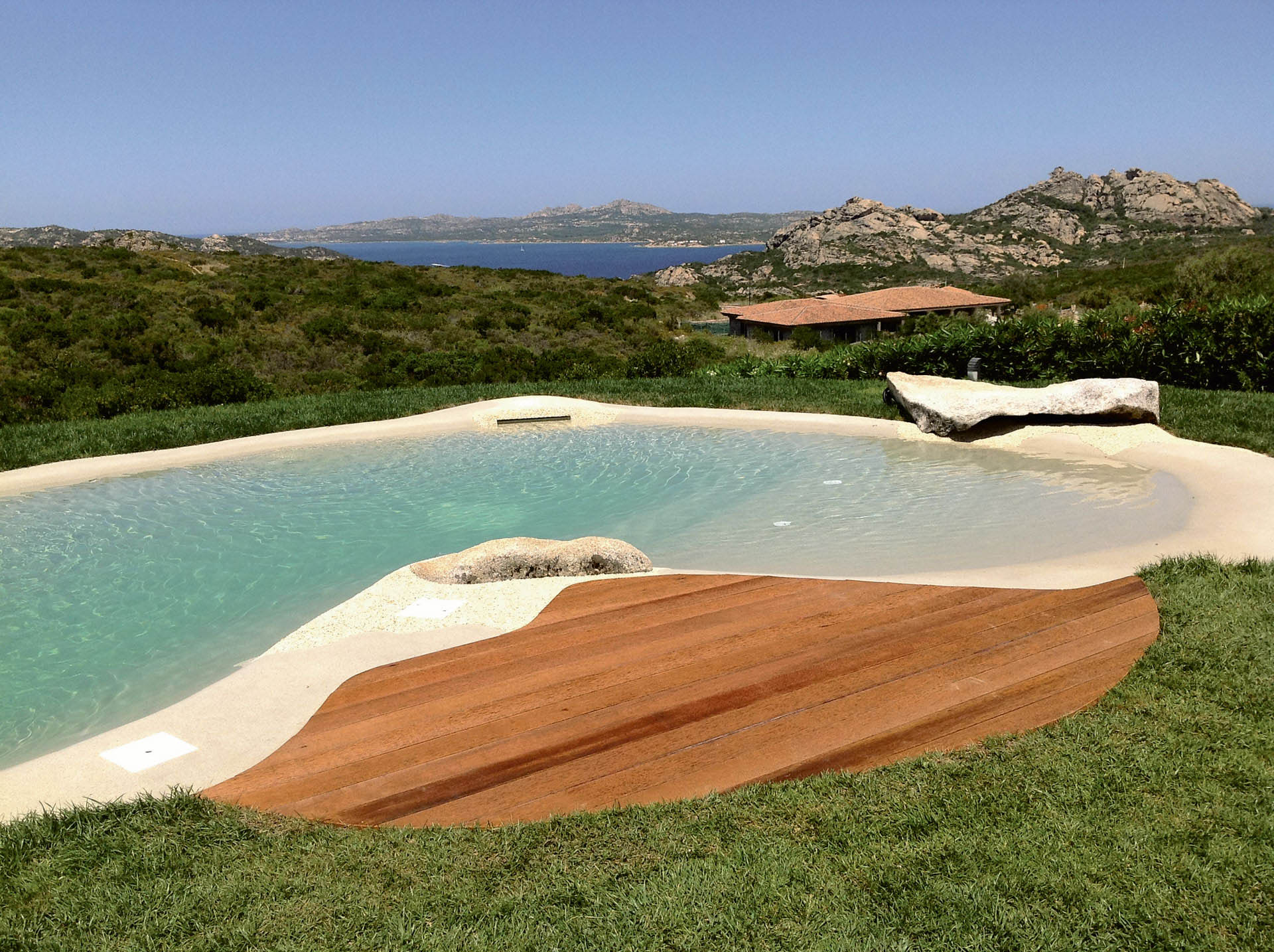 Como alternativa a los sistemas tradicionales de tratamiento del agua, Biodesign propone Ecosalt, un sistema de electrólisis con muy baja salinidad que impide la proliferación de algas y bacterias. El acabado de cuarzos y guijarros incorpora igualmente en su revestimiento resinas antibacterianas, impidiendo el deterioro de los materiales de la capa estructural.