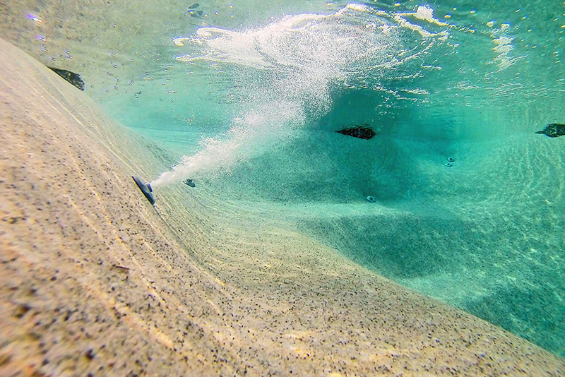 Las paredes de una piscina playa permiten adaptarse a las irregularidades naturales del terreno con pendientes entre el 10 y el 50%, además de favorecer un acceso gradual hasta las zonas de mayor profundidad. El suelo estructural permite además incorporar una instalación de hidromasaje y aerotermia, ideal para disfrutar en estas zonas perimetrales poco profundas.