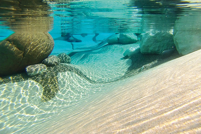 Estas piscinas reciben a menudo el nombre de piscinas playa. Como primer paso… imprescindible desprenderse del concepto tradicional de piscina. La gran variedad de diseños emulando la naturaleza aumentará las posibilidades de éxito de cualquier diseño, convirtiendo una simple piscina en un paisaje integrado con el jardín, y porque no, con el espacio interior.