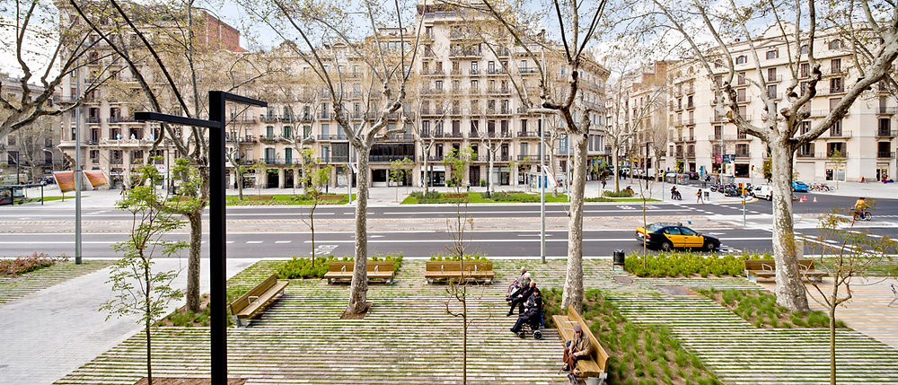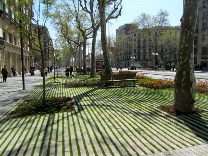 La remodelación del Paseo de Sant Joan en Barcelona es bien conocido, y ganador del Premio Cataluña Construcción 2015 en la categoría de intervención en edificación existente. En este caso, se redujeron a 3 los carriles de circulación rodada para priorizar la experiencia peatonal.
