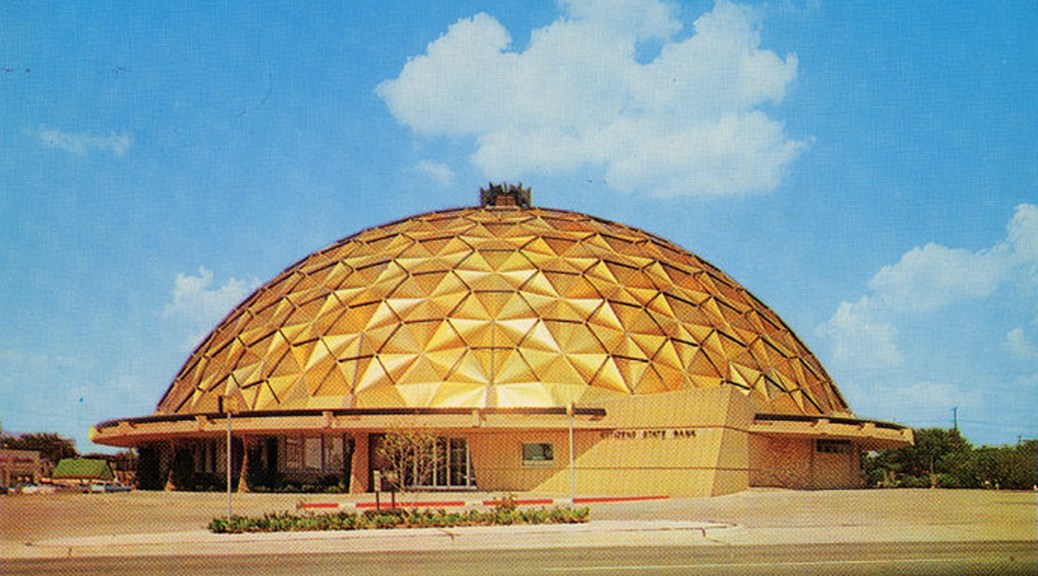 Cuando Robert Roloff recibió el encargo del “banco del futuro” para el Citizens State Bank, pensó en una cúpula geodésica, quizás como un guiño al legado de Oklahoma al sector de la aviación y de la carrera espacial. Corría el año 1958, y se trataba de construir una sucursal emblema en la famosa Ruta 66 a su paso por Oklahoma City, y lo logró con la que sería la tercera cúpula de este tipo en todo el mundo y la primera en albergar un banco. Dorada como el optimismo económico que envolvía a la sociedad americana, recibió el apodo de “The Gold Dome” (la cúpula dorada).